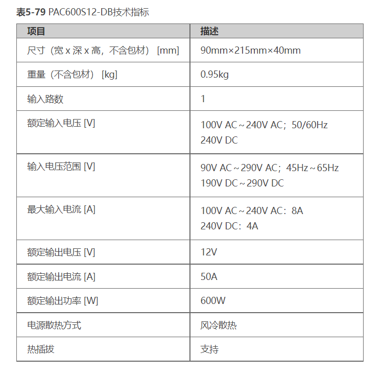 600W交流電源模塊(后前風道,電源面板側(cè)出風)