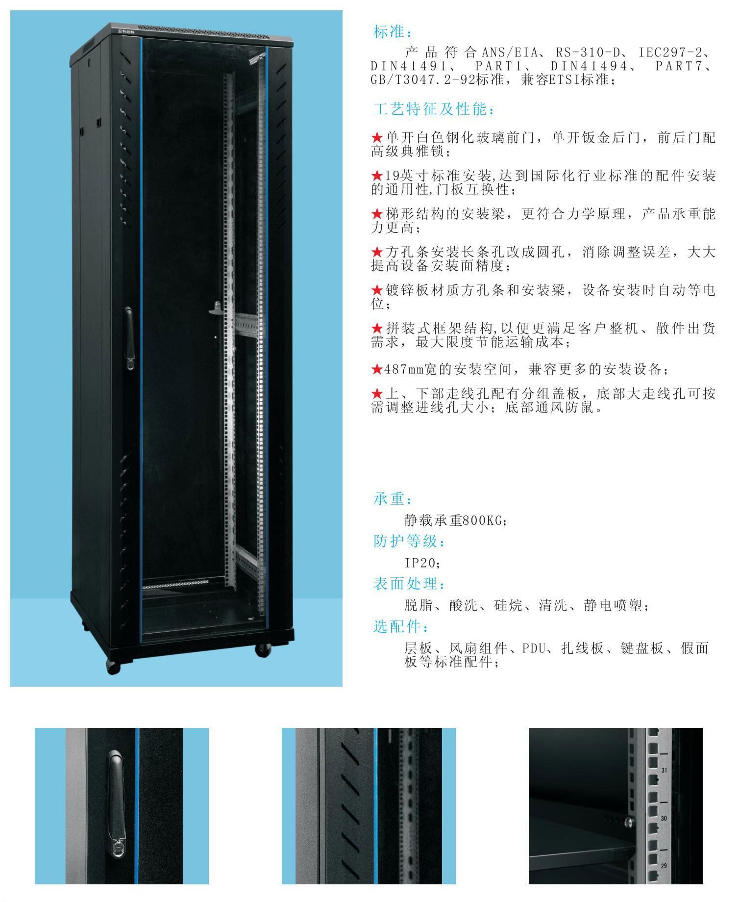 選配件:層板、風(fēng)扇組件、PDU、扎線板、鍵盤(pán)板、假面板等標(biāo)準(zhǔn)配件;
